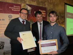 Imatge: d'esquerra a dreta, el Degà del COETIC, Miquel Conesa, el guardonat, Sergi Vila, i el Director de l'EPS, Francesc Giné. Font: UdL.