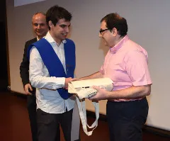 El jove estudiant va rebre de mans del degà del COETIC un diploma de reconeixement al millor expedient acadèmic, un any de col·legiació gratuïta i una tablet com a obsequi.